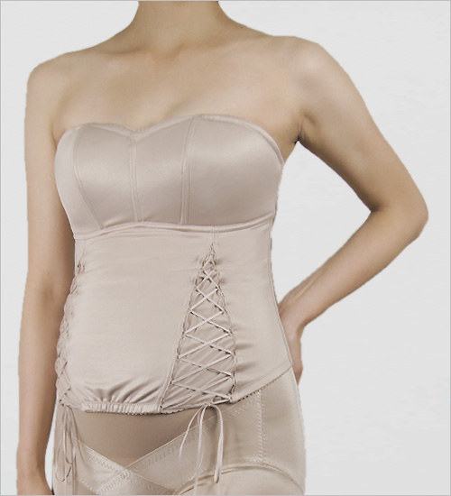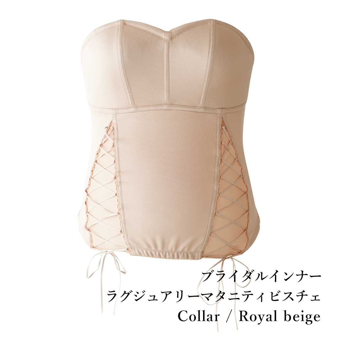 バスト(E~Iカップ前後対応)が大きいマタニティの花嫁様にお勧めするビスチェ。バストはスッキリと抑えながら整え、腹部は成長に合わせて調整可能。ご妊娠7~8ヶ月まで対応するマタニティブライダルインナー。 ●約5cmまで拡張調整可能なフック1点付き。