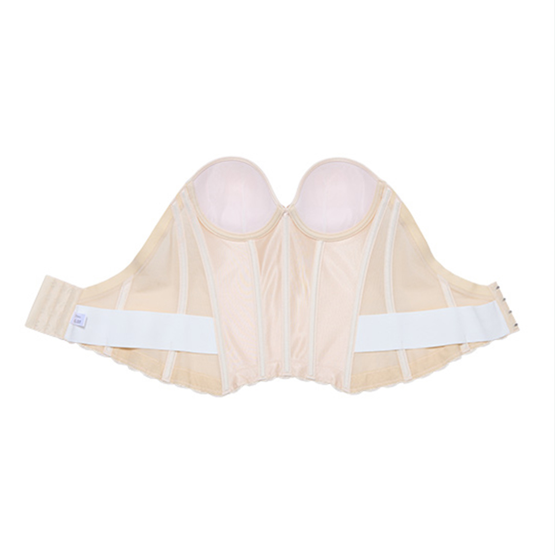 カップ中心が深く、脇位置も低いデザインなので多様なドレスに対応します。