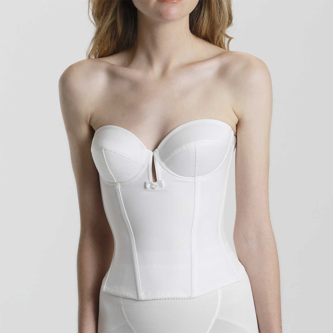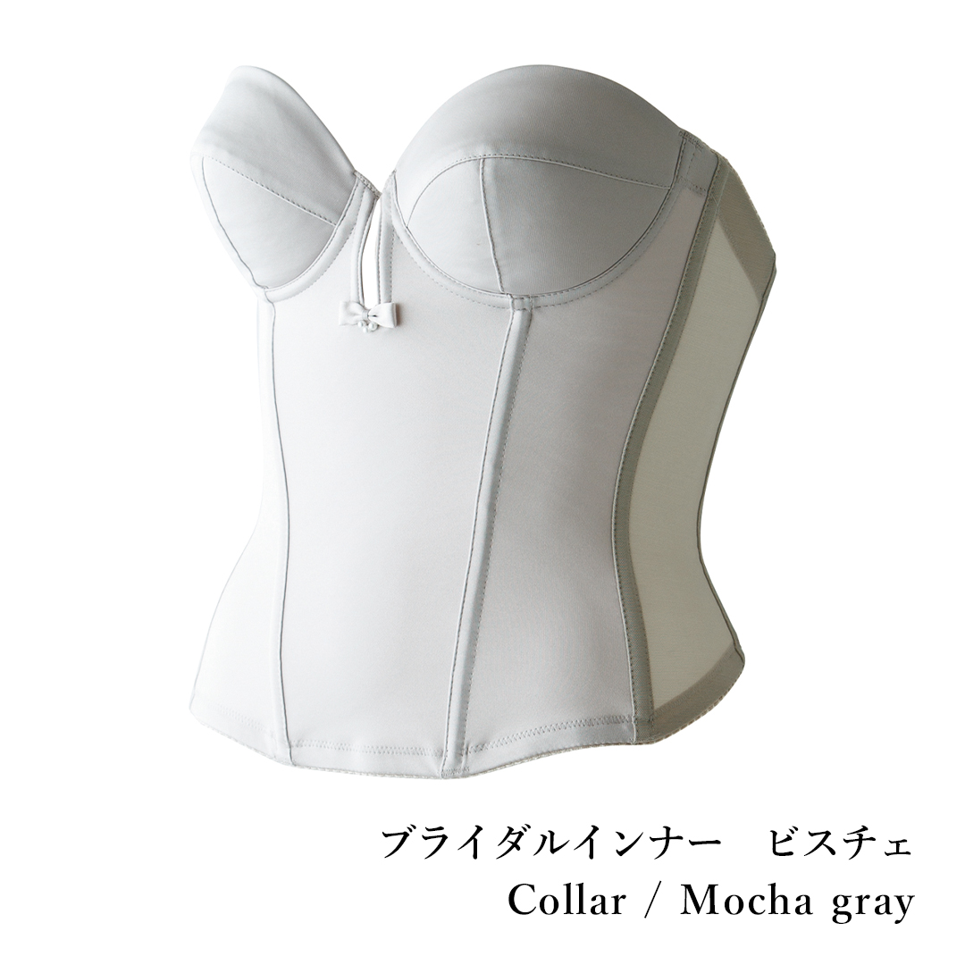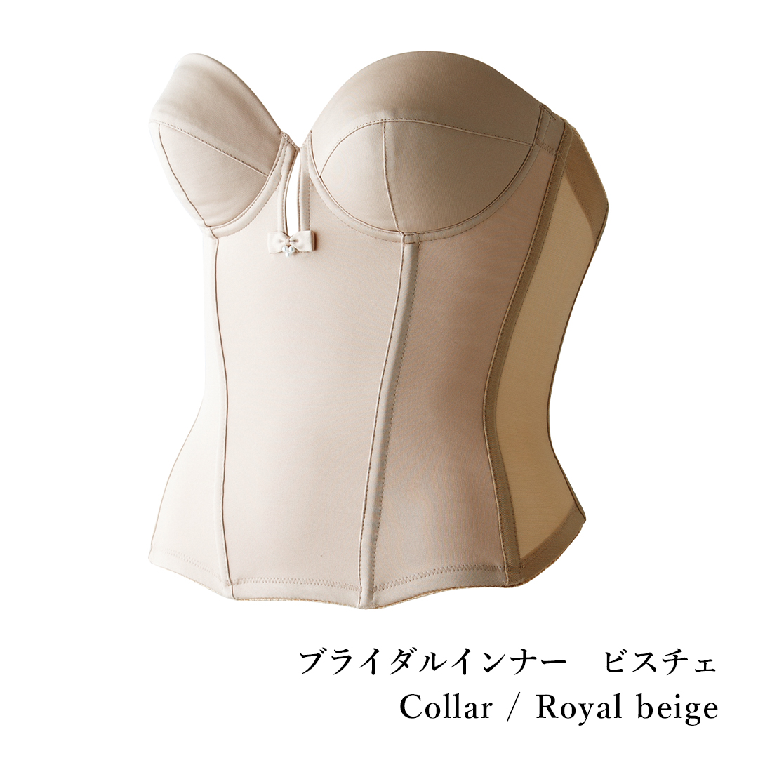 一番人気のブライダルインナー”脇肉・カップ浮き解消””理想的なクビレ実現”様々なドレスに対応できるノンレースタイプ。定番色のオフホワイト、透明感を演出するモカグレー、お肌との一体感を引き出すロイヤルベージュの3色展開。